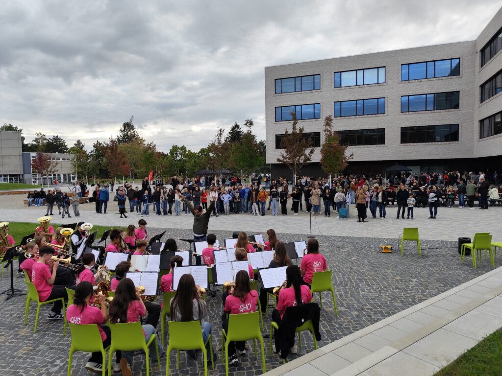Während die 9. Bläserklasse musikalische Untermalung lieferte, konnten Eltern, Lehrer und Kinder der neuen 5. und 7. Klassen Kontakte knüpfen. Bei bestem, sonnigen Wetter und ausgelassener Stimmung kam man leicht ins Gespräch und alle werden diesen Start ins GHO-Leben hoffentlich in guter Erinnerung behalten.