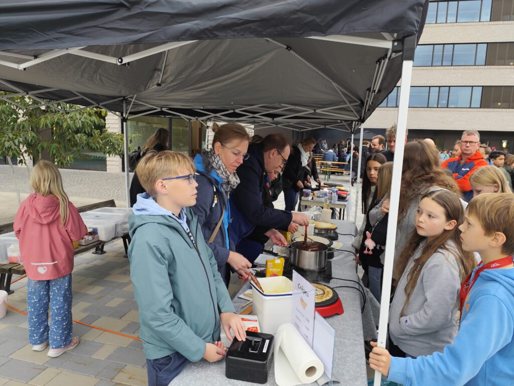 Der Förderverein stand wie gewohnt im Foyer von Haus F allen Eltern und Kindern für Fragen zur Verfügung. Vor allem aber sorgten eine große Zahl von Helfern für das leibliche Wohl aller Besucher. Besonders beliebt war der Crépesstand, vor dem sich immer wieder eine Schlange bildete.